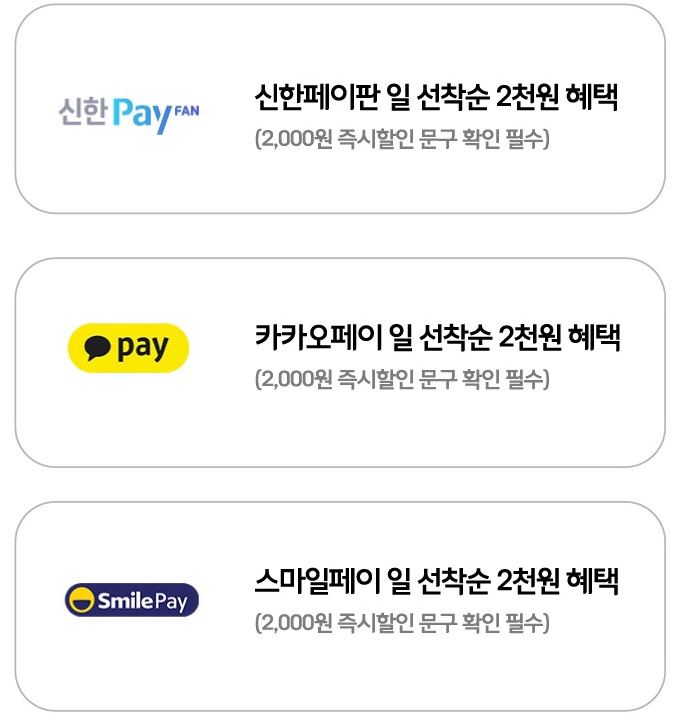 결제 수단 별 선착순 추가 할인.