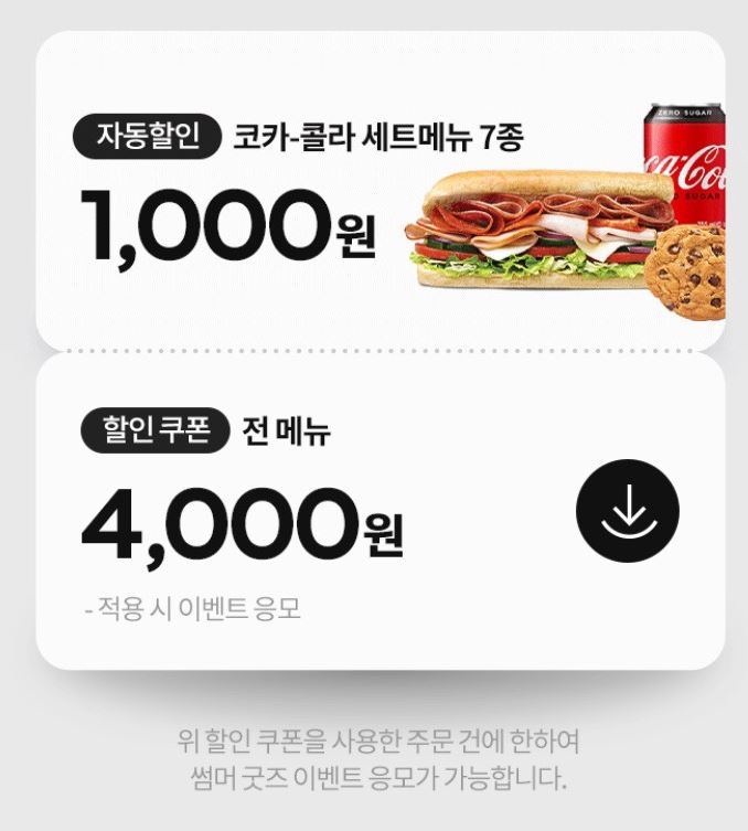 코카콜라 세트메뉴 7종 천원 자동할인,