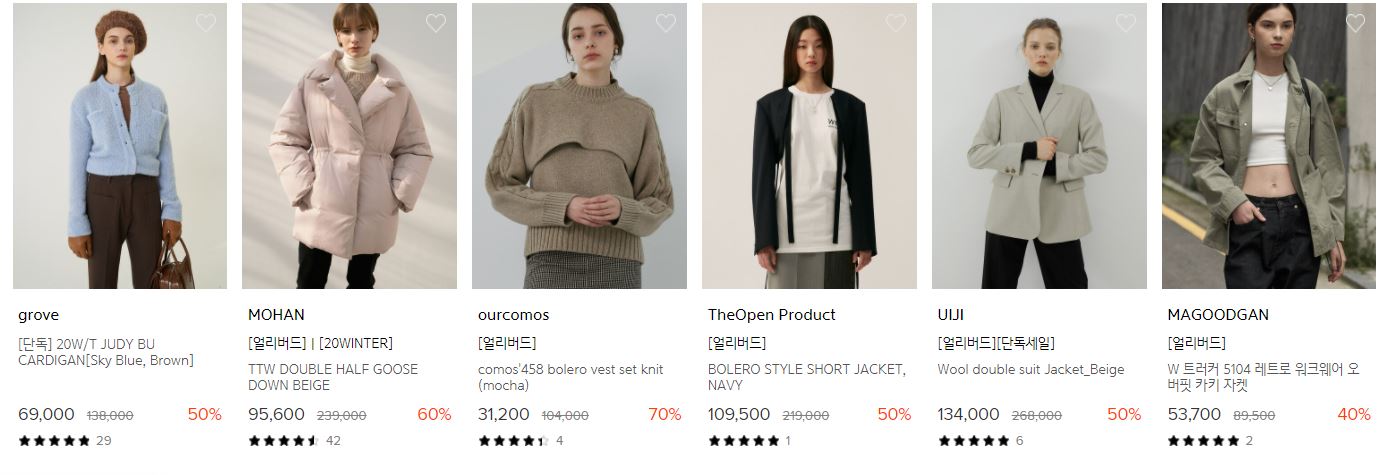 할인 품목 : 점퍼, 가디건, 자켓 등