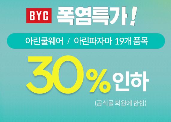 BYC 아린쿨웨어/아린파자마 30% 할인 정보 [링크]