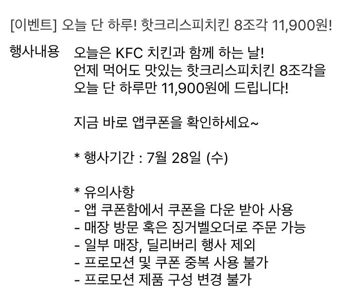 KFC 단하루 치킨 이벤트