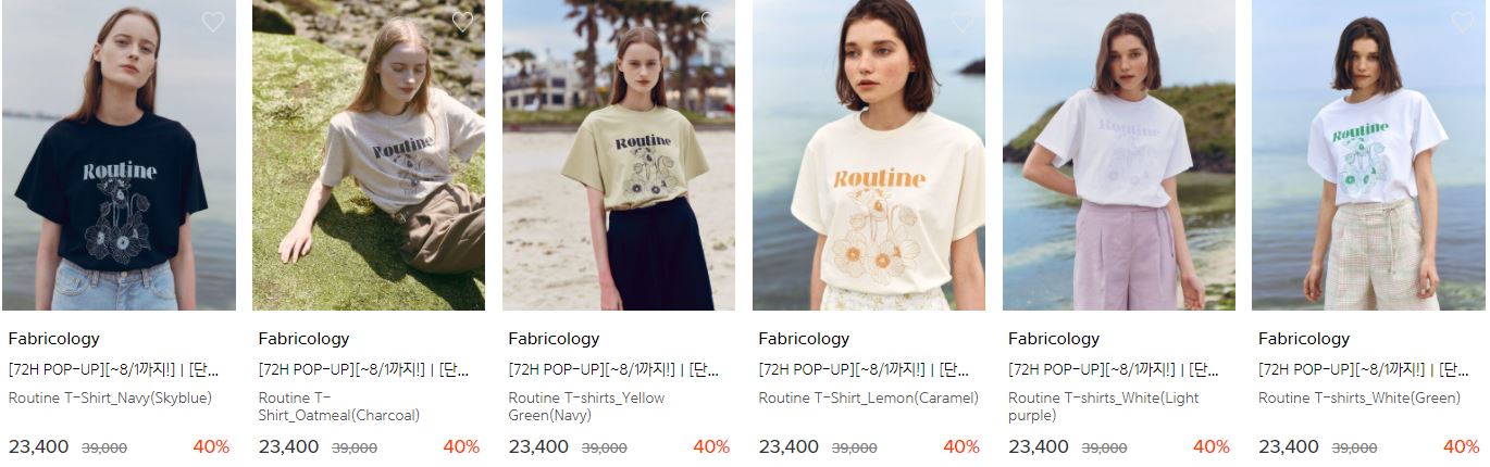 할인 품목 : 티셔츠, 셔츠, 스커트 등