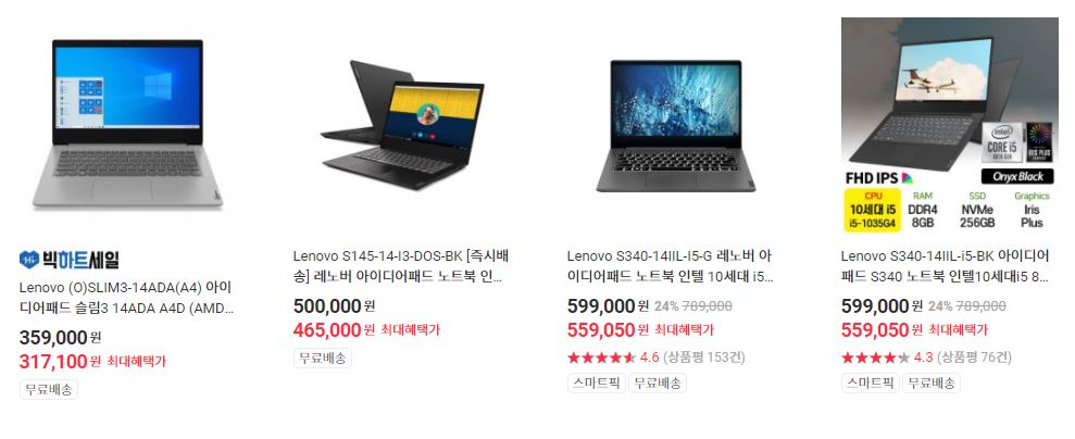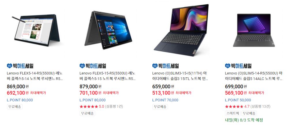 레노버 다양한 제품을 할인 판매하네요.