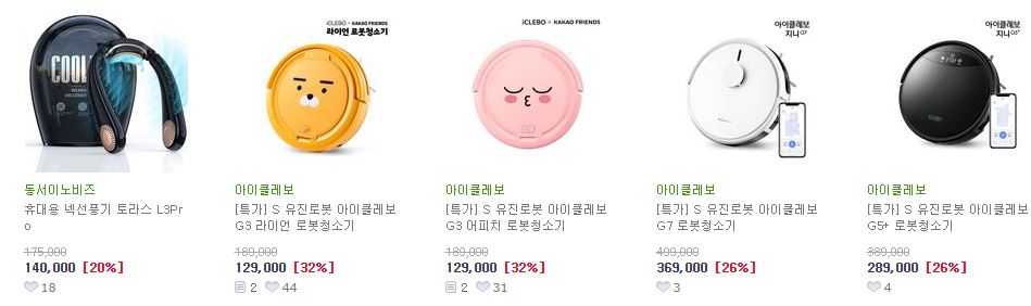 할인 품목 : 무선이어폰, 로봇청소기, 구강세정기 등