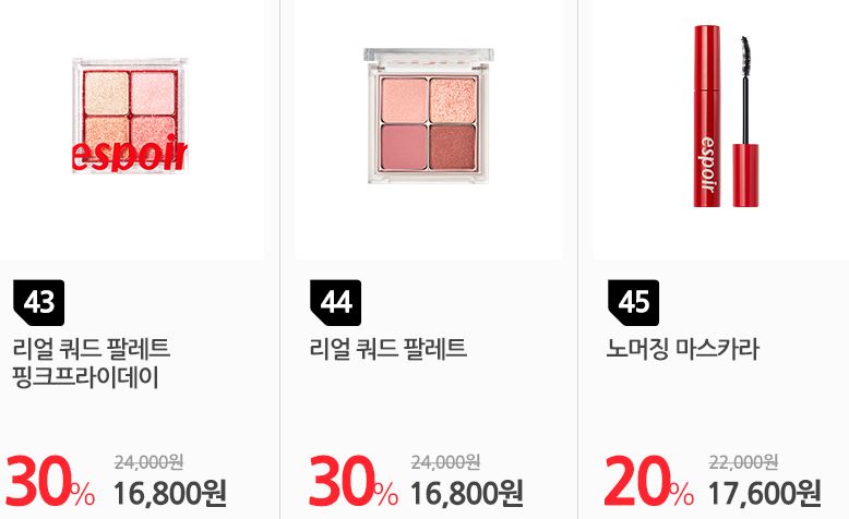 에스쁘아 다양한 제품을 할인 판매하네요.