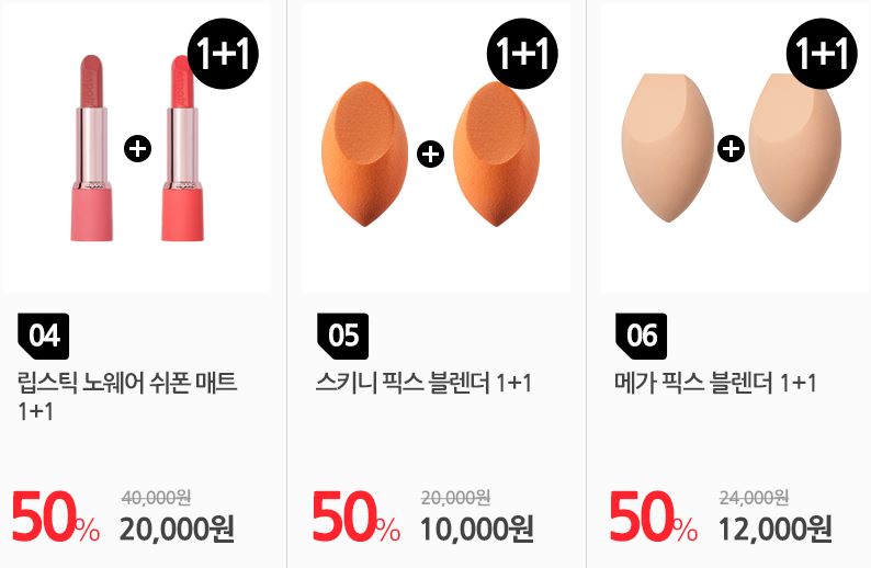 할인 품목 : 선크림, 립스틱, 마스카라 등