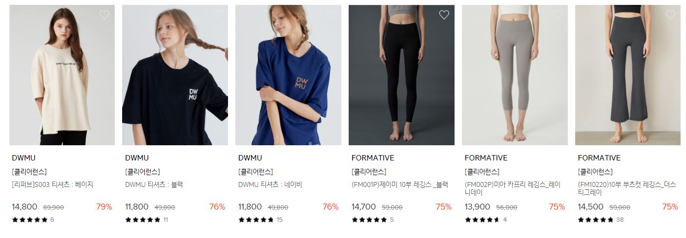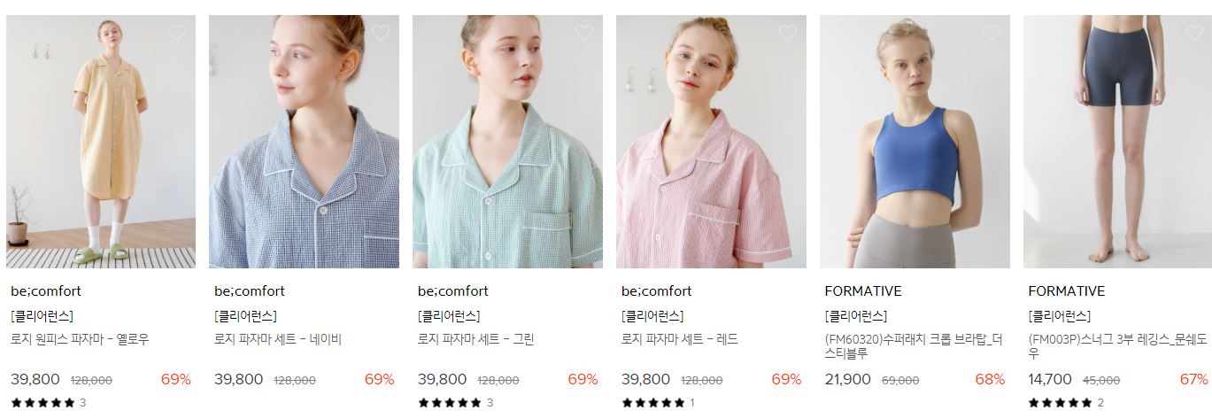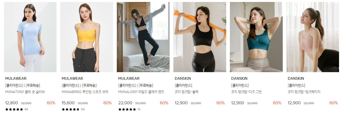 할인 품목 : 브라, 레깅스, 파자마 등