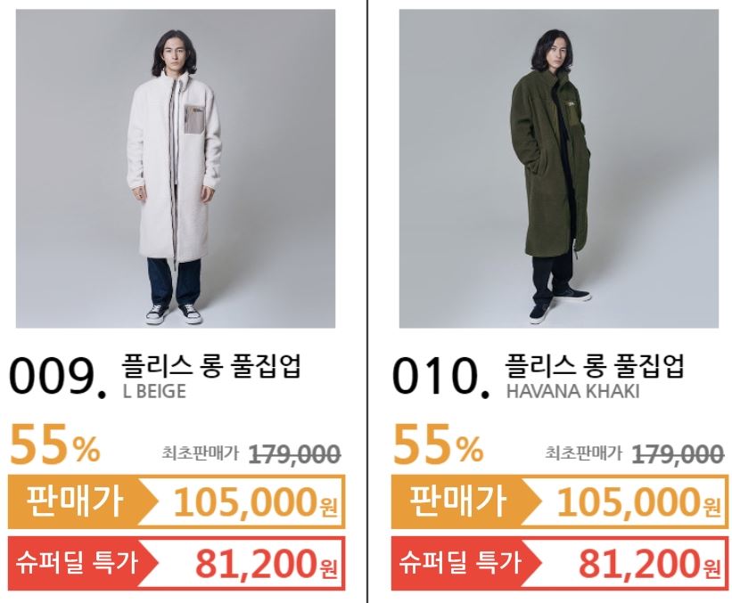할인 품목 : 후드티, 점퍼 등