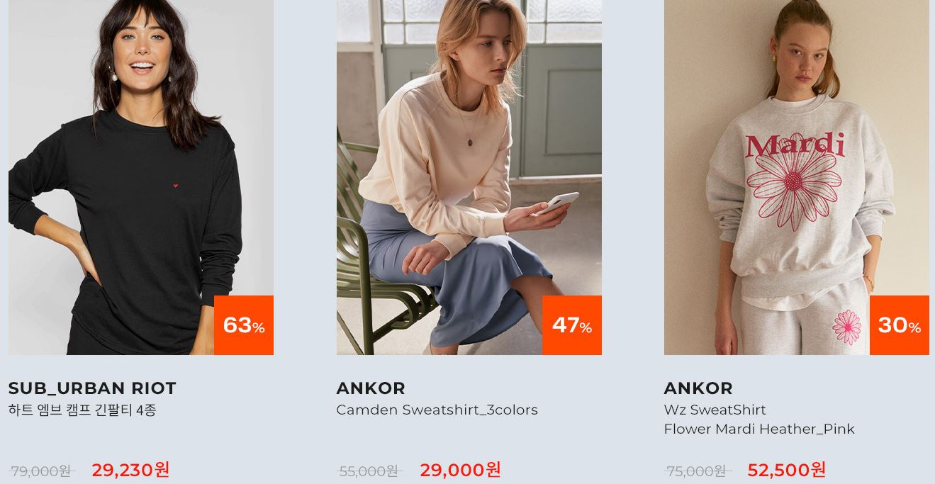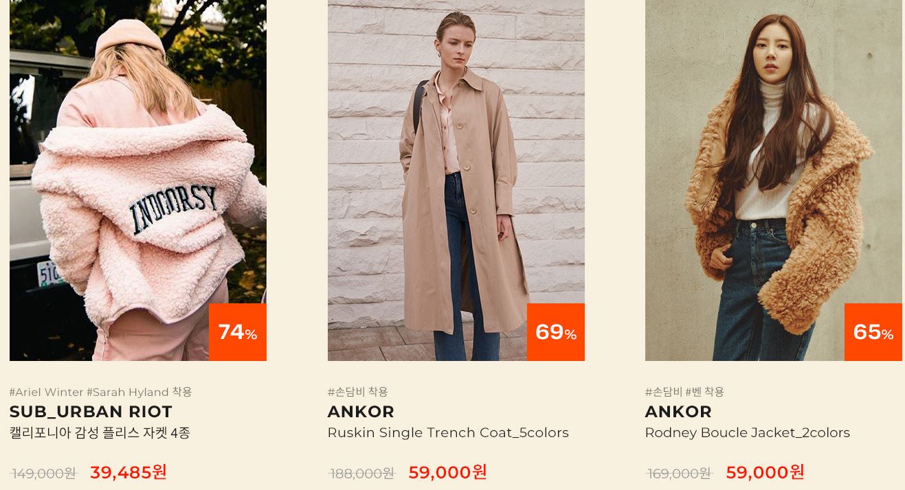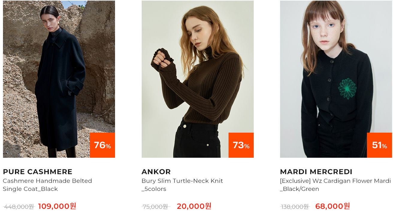 할인 품목 : 자켓, 코트, 니트 등
