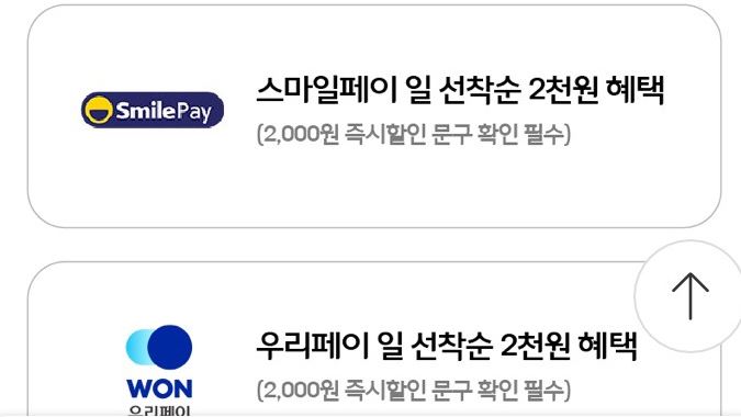 결제 수단 별 추가 할인 (매일 오전 10시 30분 선착순)