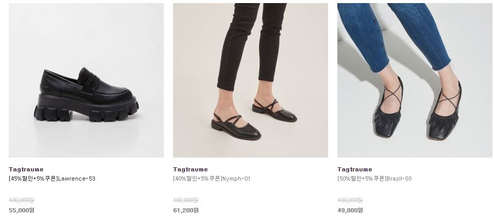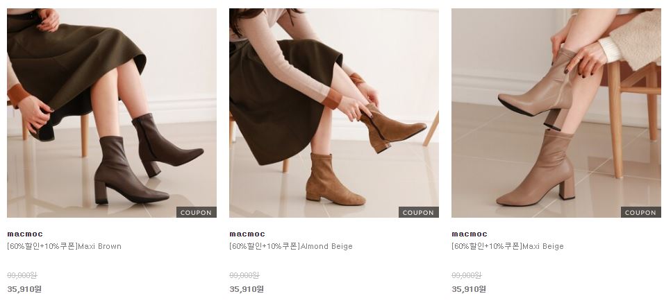 할인 품목 : 앵클부츠, 펌프스, 로퍼 등