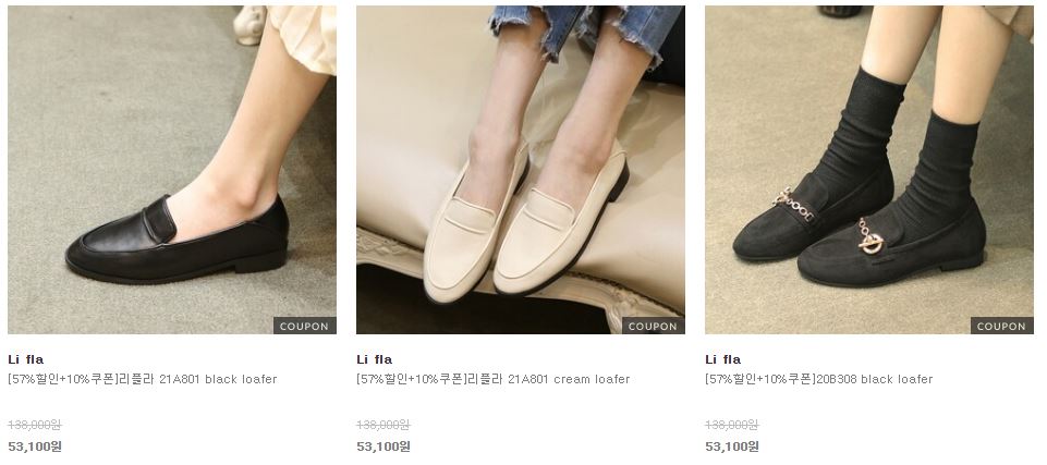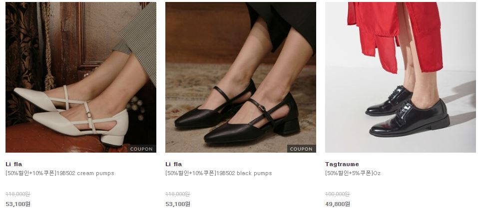 할인 품목 : 앵클부츠, 펌프스, 로퍼 등