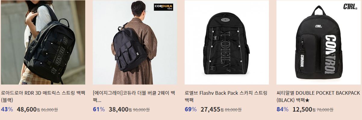 할인 품목 : 백팩, 크로스백, 캐리어 등