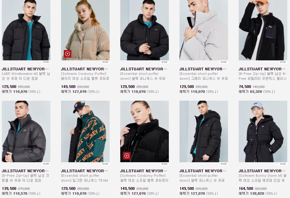 할인 품목 : 점퍼, 티셔츠, 가방 등