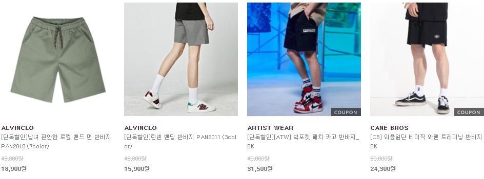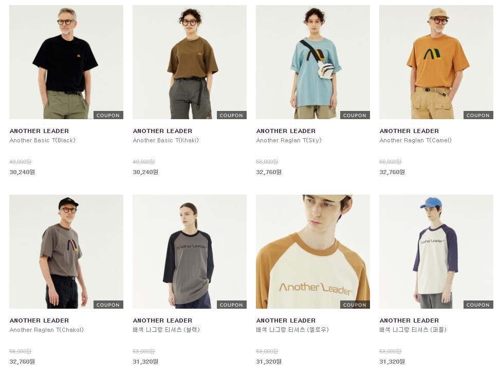 할인 품목 : 티셔츠, 셔츠, 팬츠 등