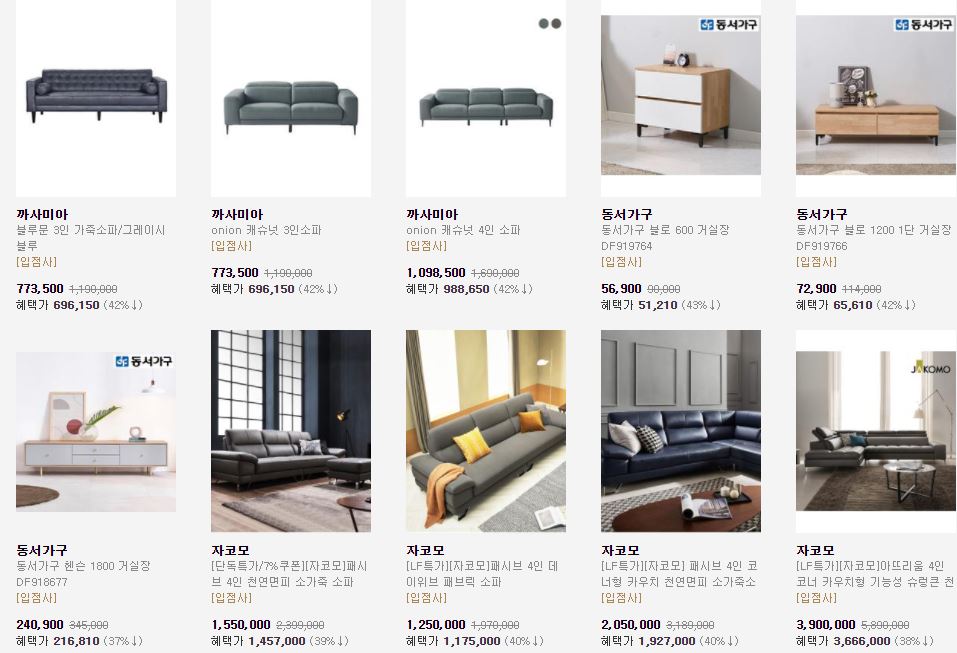 할인 품목 : 소파, 거실장, 식탁세트 등