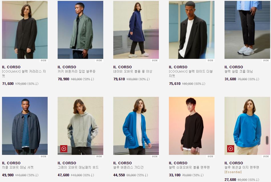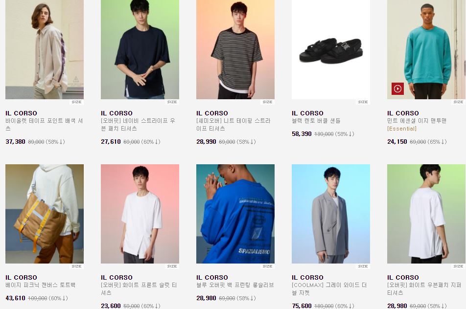 일꼬르소 다양한 제품을 할인 판매하네요.