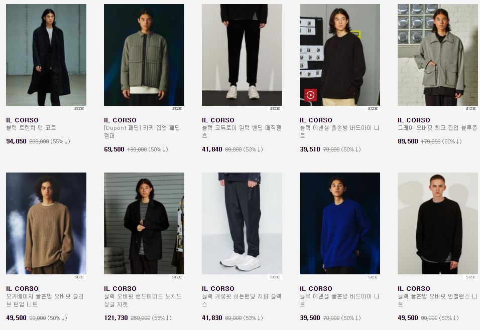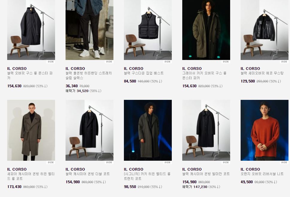 일꼬르소 다양한 제품을 할인 판매하네요.