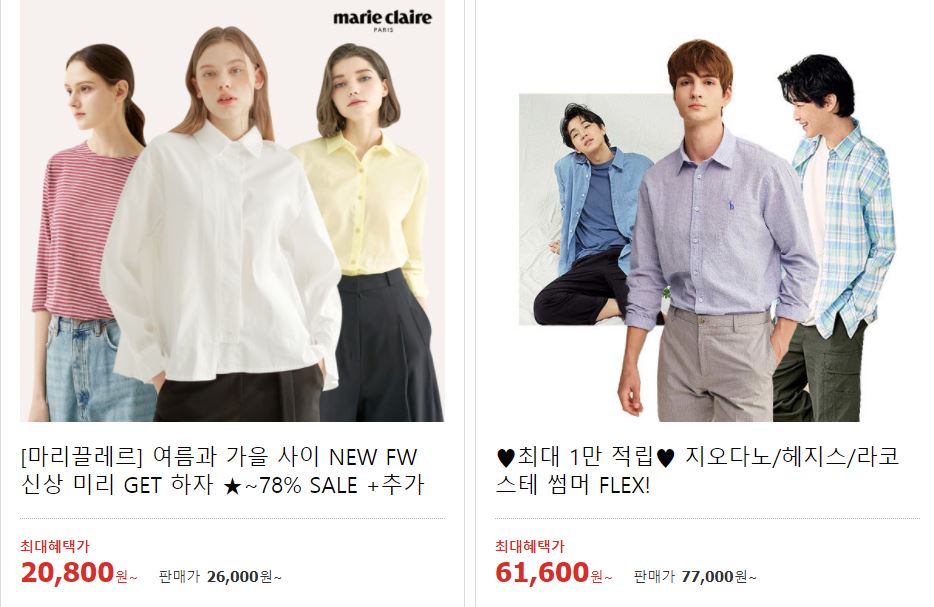 할인 품목 : 의류, 화장품, 가전 등