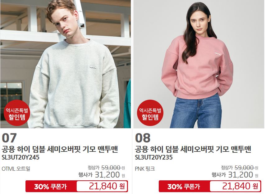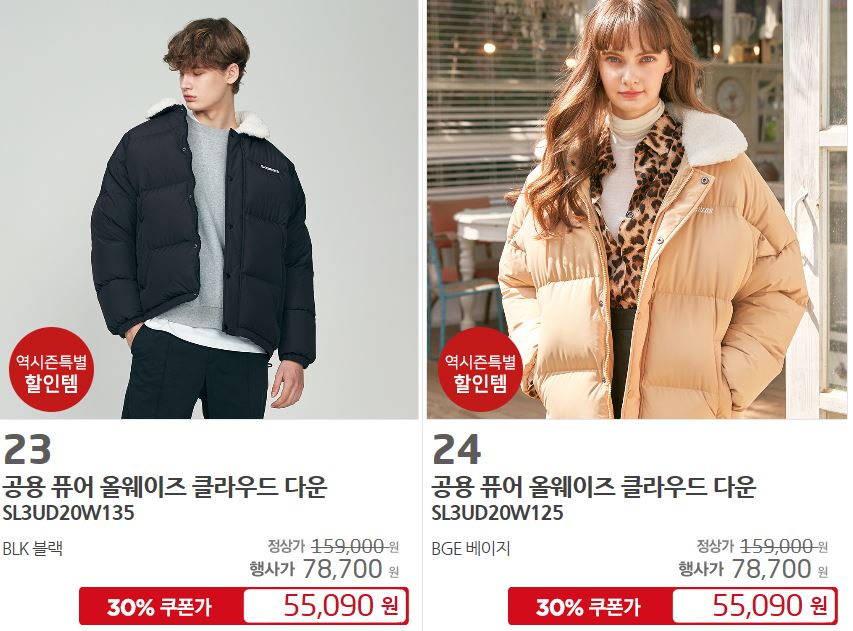 할인 품목 : 점퍼, 티셔츠, 운동화 등