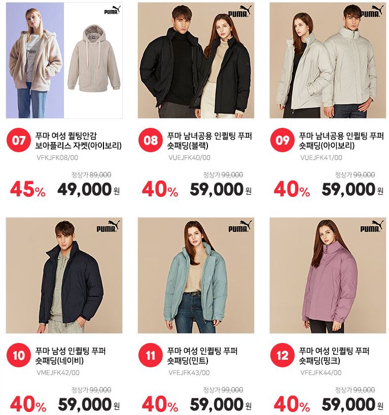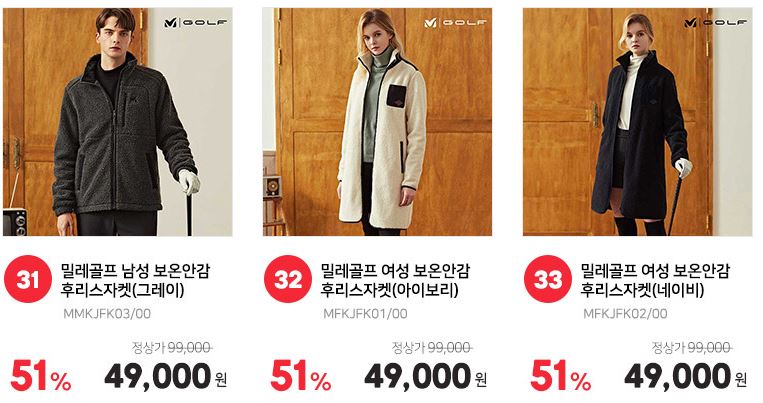 할인 품목 : 자켓, 점퍼, 맨투맨 등