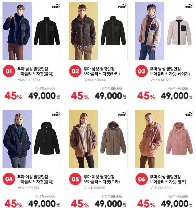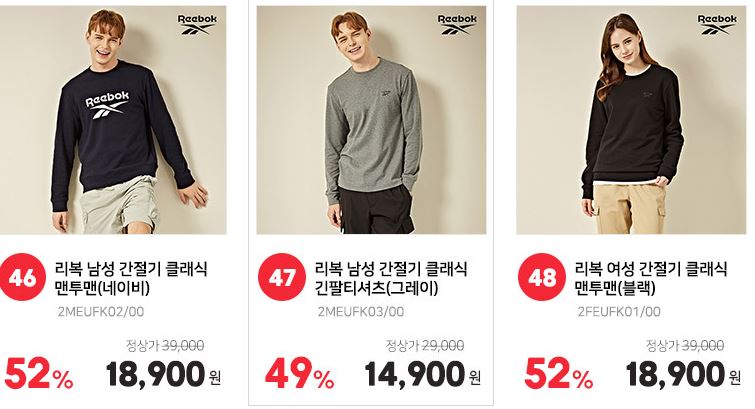 할인 품목 : 자켓, 점퍼, 맨투맨 등