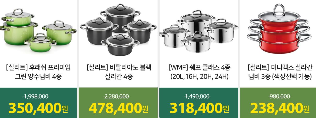할인 품목 : 냄비, 후라이팬, 잔 등
