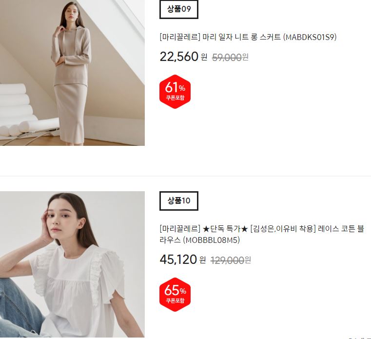 마리끌레르 다양한 제품을 할인 판매하네요.