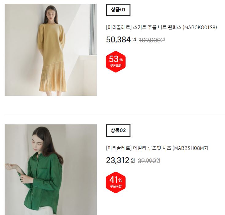 할인 품목 : 원피스, 점퍼, 니트 등