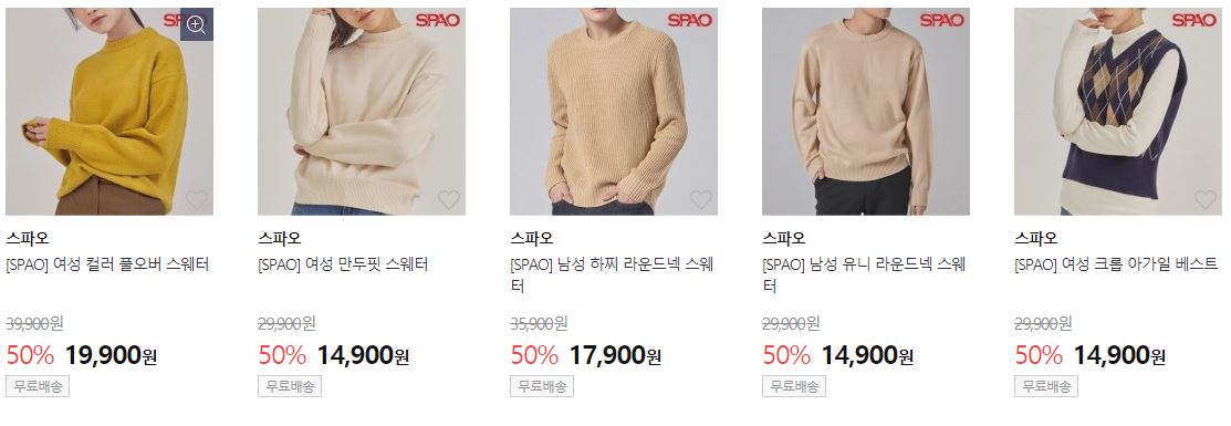 스파오 사계절전 최대 77% 세일 정보 [링크]