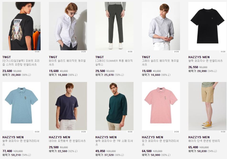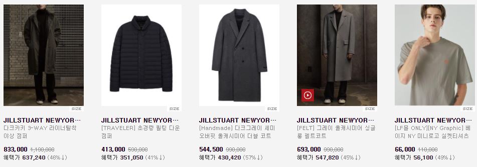 할인 품목 : 셔츠, 코트, 니트 등
