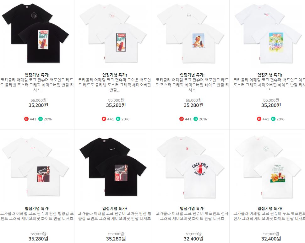 코카콜라 어패럴 다양한 제품을 할인 판매하네요.