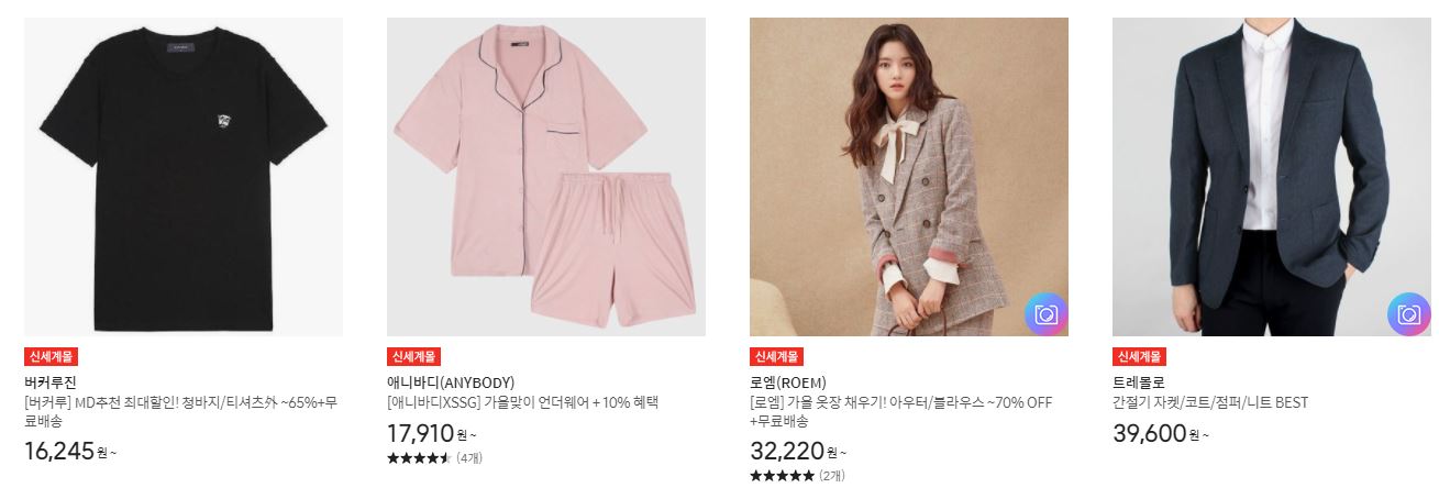 할인 품목 : 자켓, 코트, 티셔츠, 잠옷 등