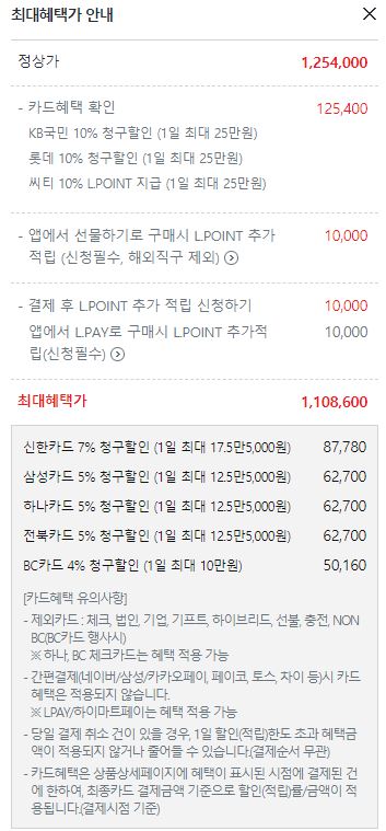 정가 1254000원 / 최대 할인가 1108600원