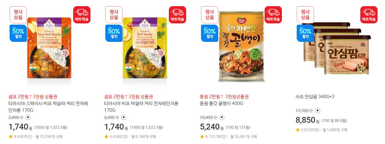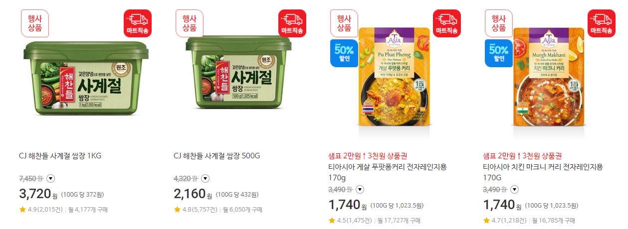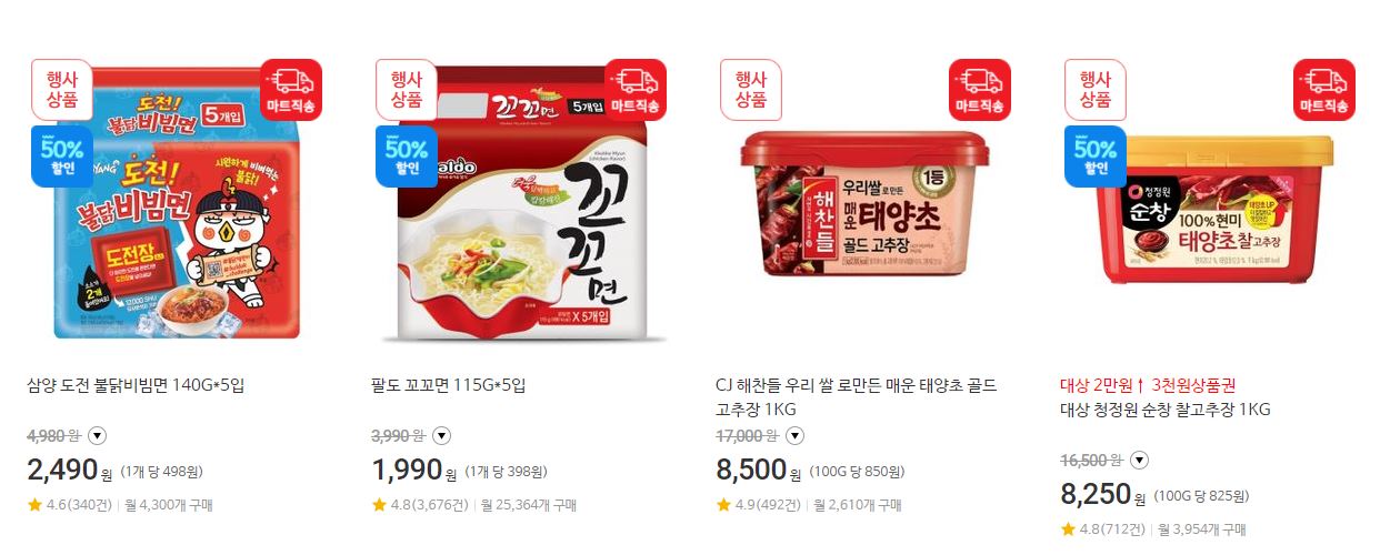할인 품목 : 불닭비빔면, 골뱅이, 고추장 등