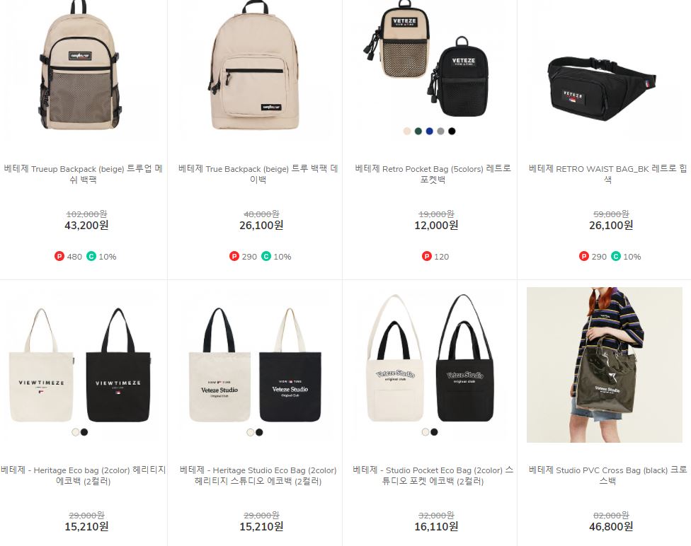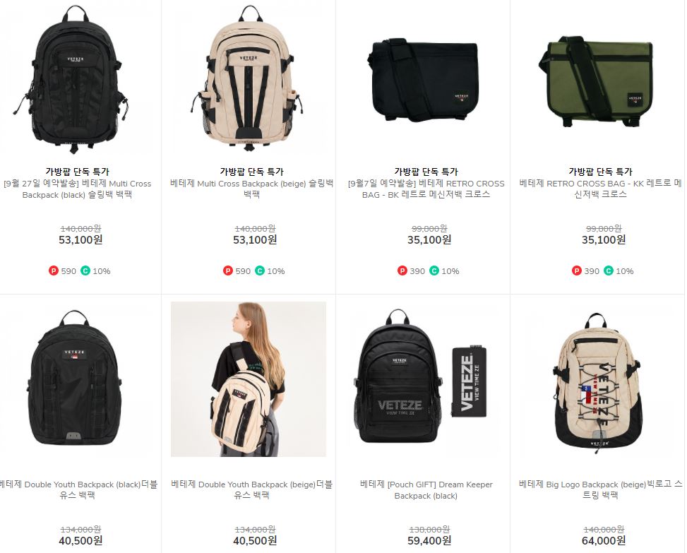 할인 품목 : 백팩, 크로스백 등
