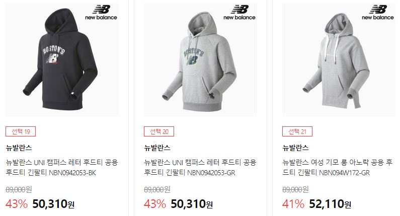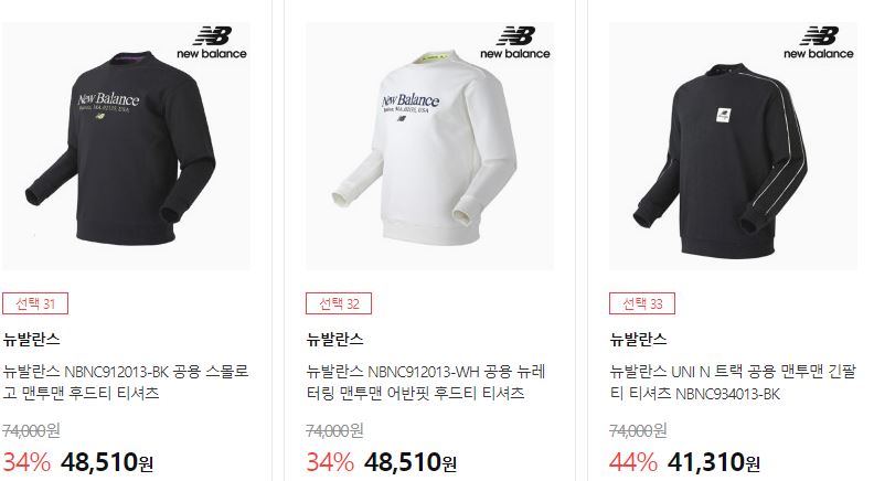 뉴발란스 다양한 제품을 할인 판매하네요.