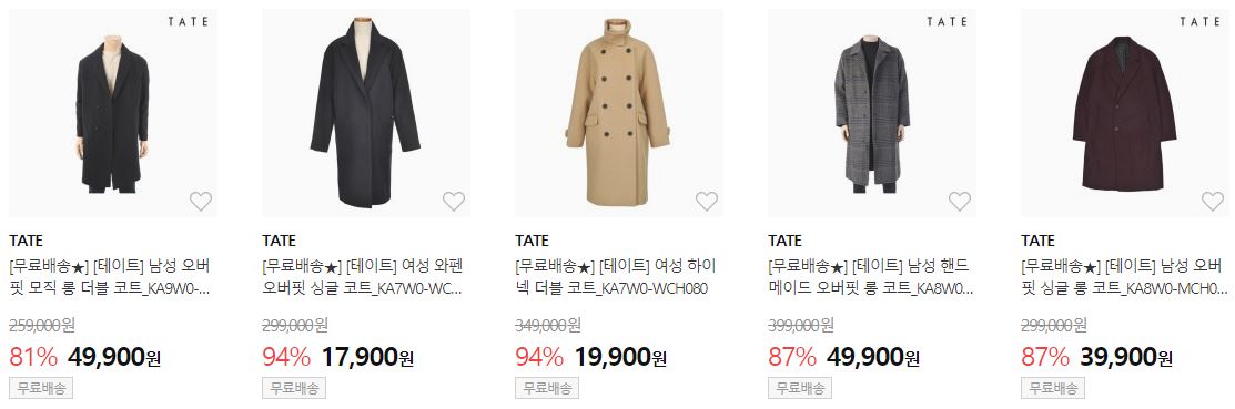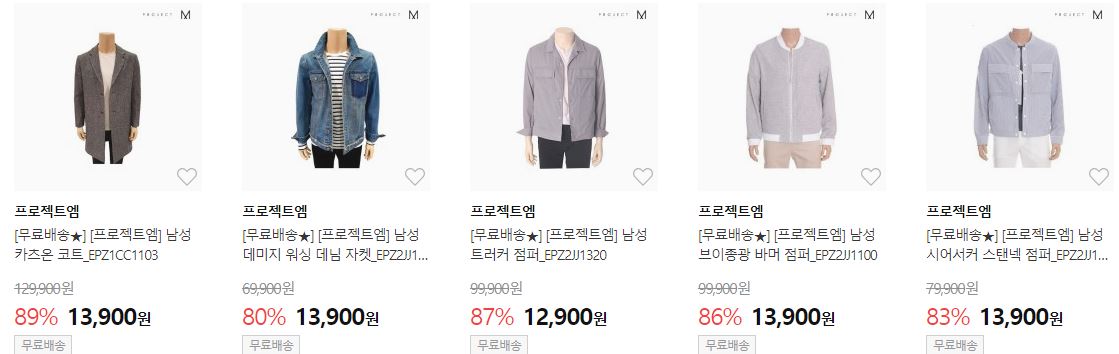 할인 품목 : 코트, 티셔츠, 점퍼 등