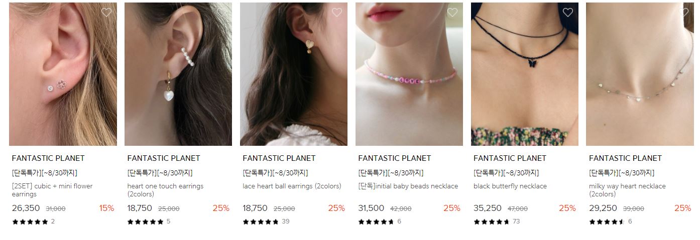 할인 품목 : 귀걸이, 목걸이 등