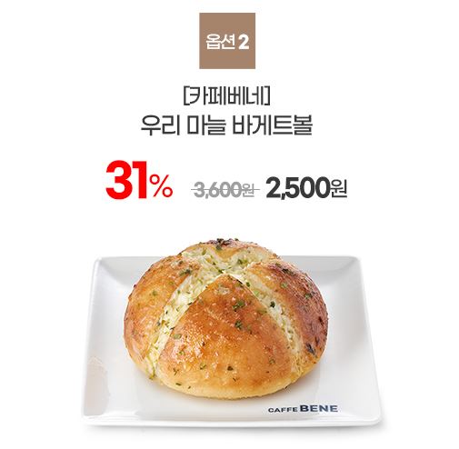 할인 메뉴 : 우리 마늘 바게트볼, 바베큐 치킨 깜빠뉴 + 카페라떼 등