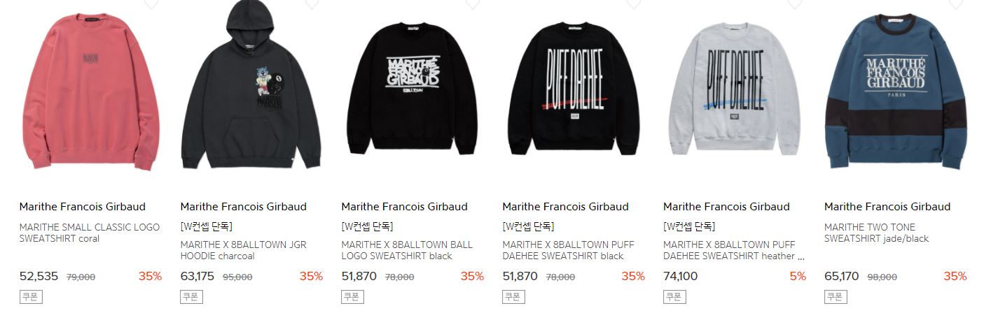 Marithe Francois Girbaud 다양한 제품을 할인 판매하네요.
