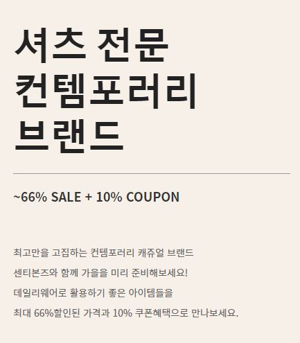 할인 품목 : 셔츠, 자켓 등