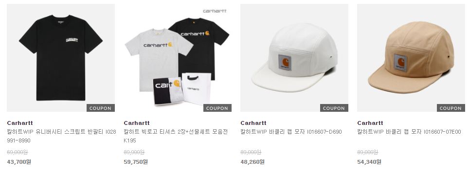 할인 품목 : 티셔츠, 팬츠, 모자 등
