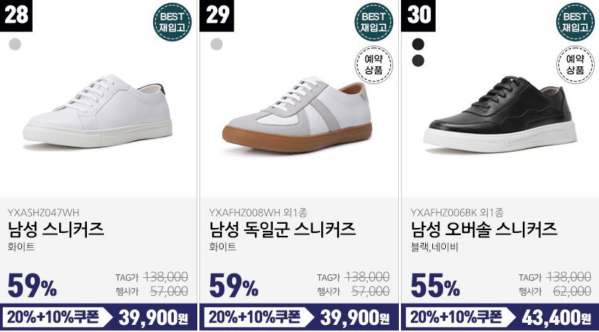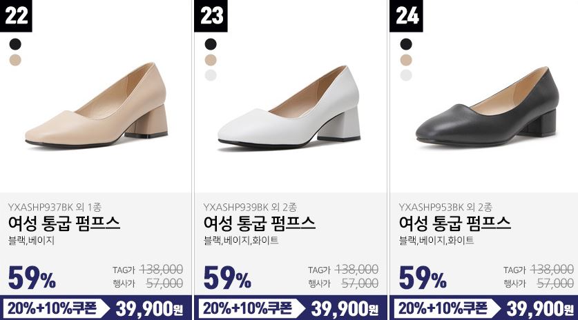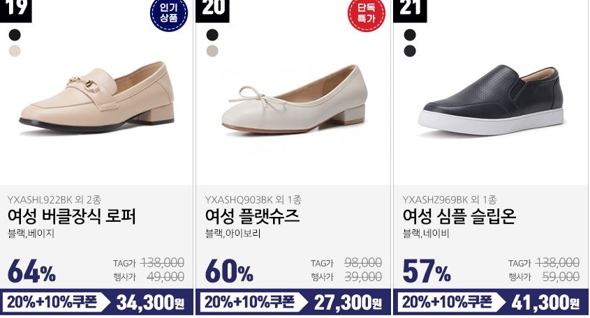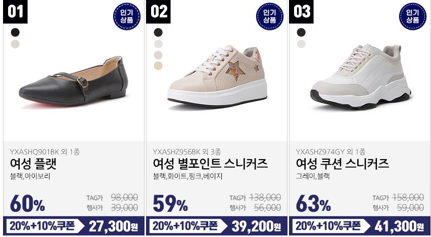 할인 품목 : 운동화, 펌프스, 샌들 등