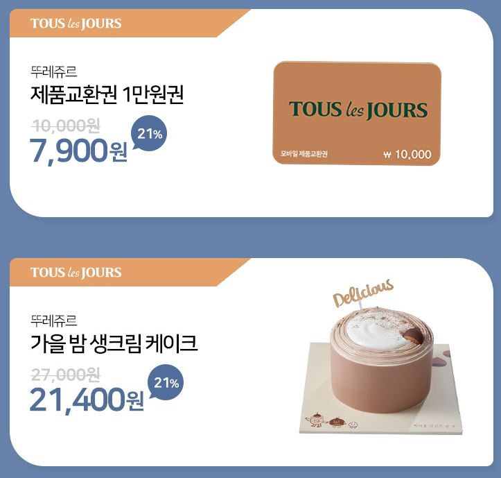 할인 품목 : 제품교환권, 마스카포네 티라미수 케이크 등