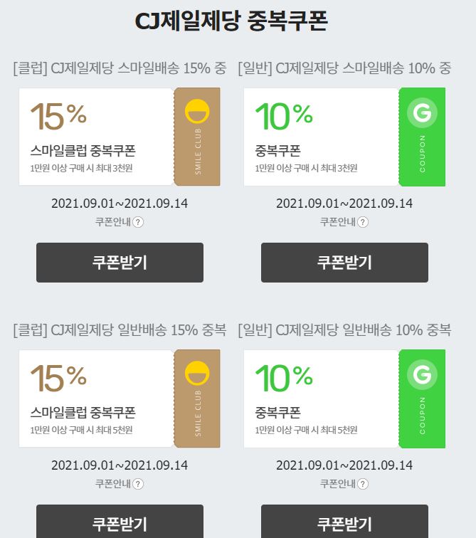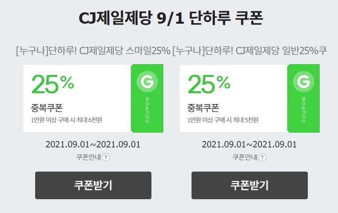 CJ제일제당 최대 20% 할인쿠폰 + 25% 중복쿠폰 정보 [링크]