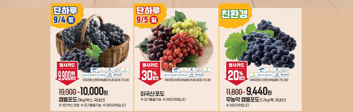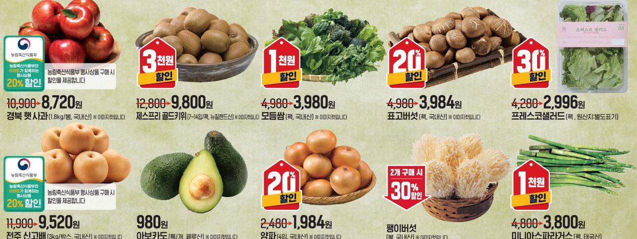 할인 품목 : 육류, 과일, 냉동식품 등