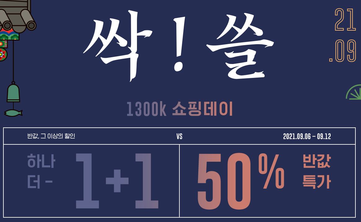 1300K 싹쓸 쇼핑데이 이벤트 정보 포스팅입니다.
