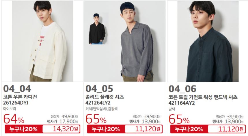 에잇세컨즈 다양한 제품을 할인 판매하네요.