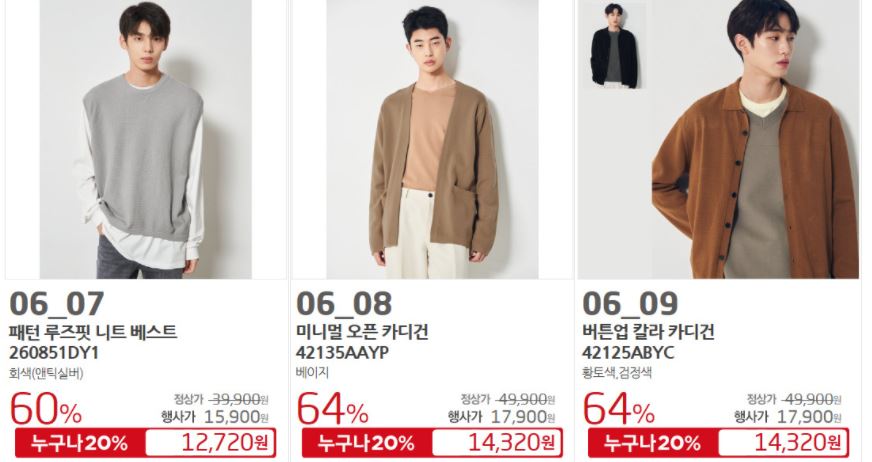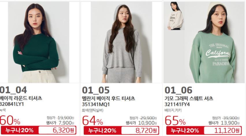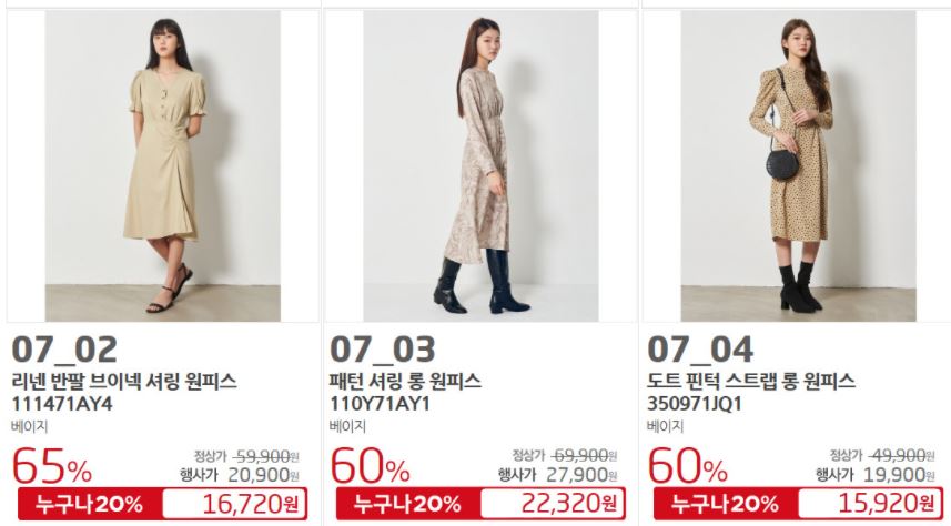 할인 품목 : 원피스, 니트, 스커트 등